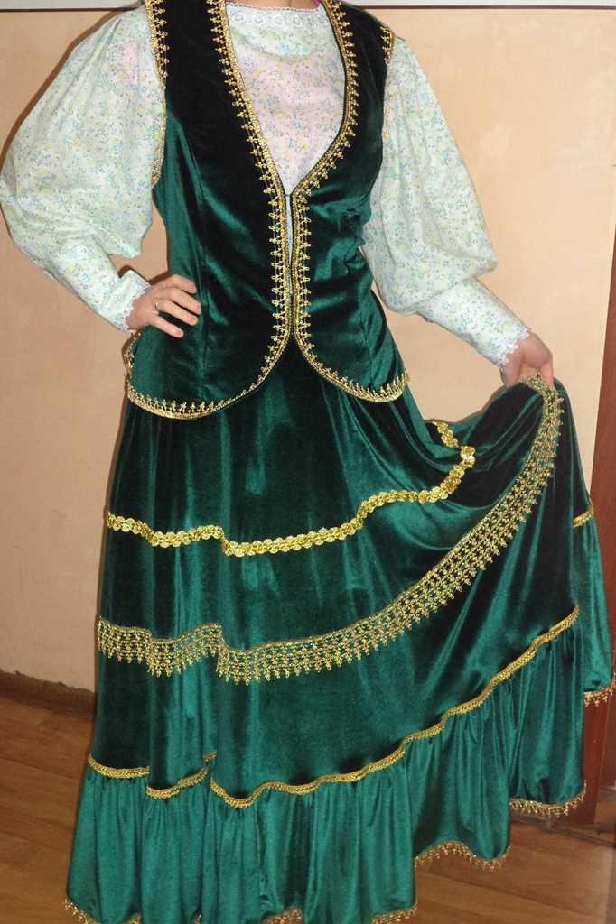 Костюм женский сценический , зеленый бархат